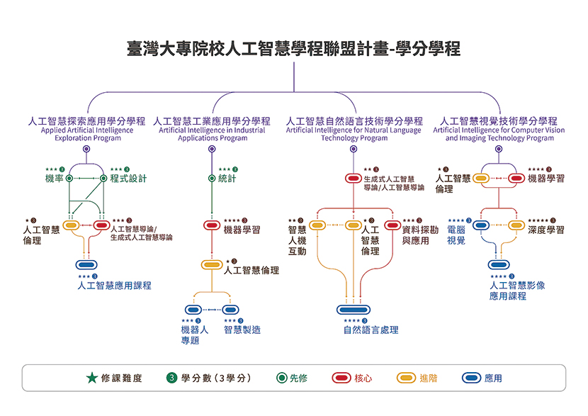 另一方面,「即戰力」長期以來是企業招募的關鍵指標,如何在校園中營造學習友善的環境,循序漸進為非相關科系學生建構跨領域的人工智慧能力,成為高教圈的重要課題,教育部也在這股趨勢下,順勢推動並催生了「臺灣大專院校人工智慧學程聯盟(Taiwan Artificial Intelligence College Alliance, TAICA)」。