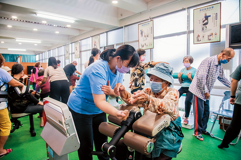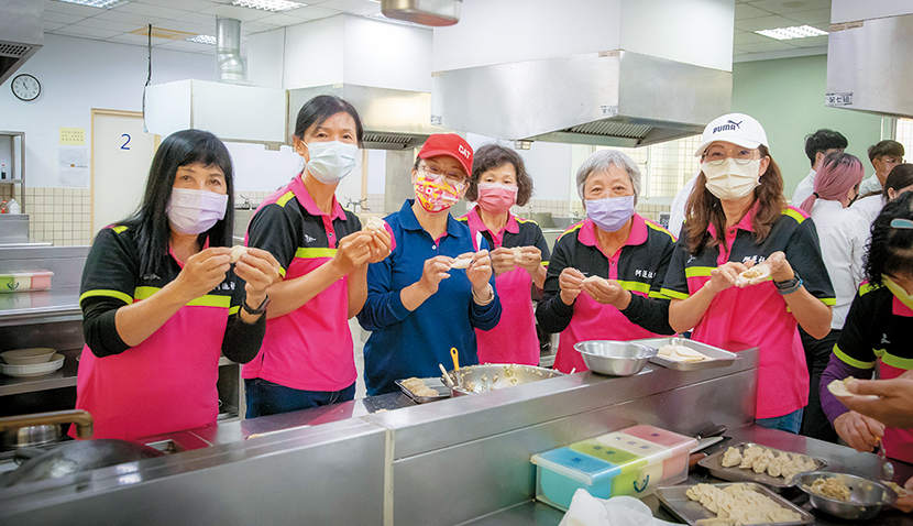 「志工參與,是成功的另一個關鍵。」張翊峰說。阿蓮區志工人數約有一百四十九位,茄定區則有五十五位志工,其中包括社區成員,像是對社區有高度關懷意願的退休人員,及擁有體適能或醫藥背景的嘉藥畢業生,他們願意回到社區,貢獻自己的專業知識與經驗,為長者提供服務。