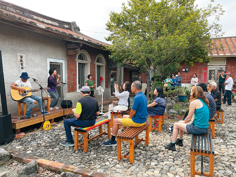 在觀光升級方面,團隊透過文化導覽、社區營造與藝文活動,逐步形塑在地特色。不僅規劃主題遊程、串聯旅遊團進入場域,還活化古厝空間設置舞臺、重啟佳冬詩人步道,並定期舉辦藝術家駐村與音樂表演等活動。其中,「共下咖啡」結合百年古厝與藝文展演,已成為在地新興亮點,吸引客家金曲獎得主山狗大後生樂團駐唱演出,展現文化創生的魅力。